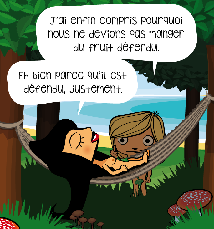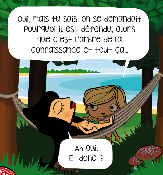 Oui, mais tu sais, on se demandait pourquoi il est défendu, alors que c’est l’arbre de la connaissance et tout ça…